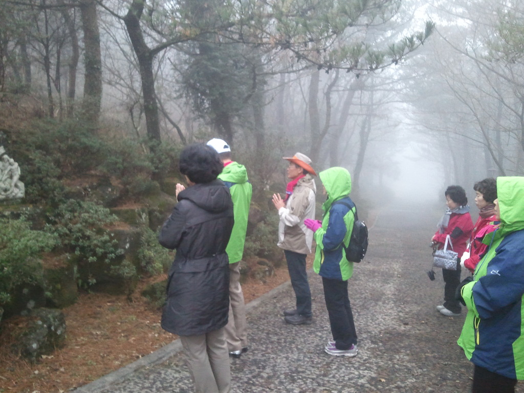 앞을 분간하기 어려울 정도로 안개낀 이시돌 언덕